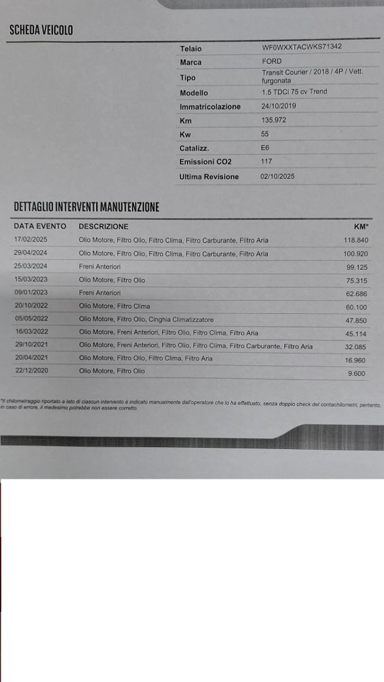 FORD Transit Courier 1.5 TDCi 75CV Van Trend Attrezzato E6d Az. Italia